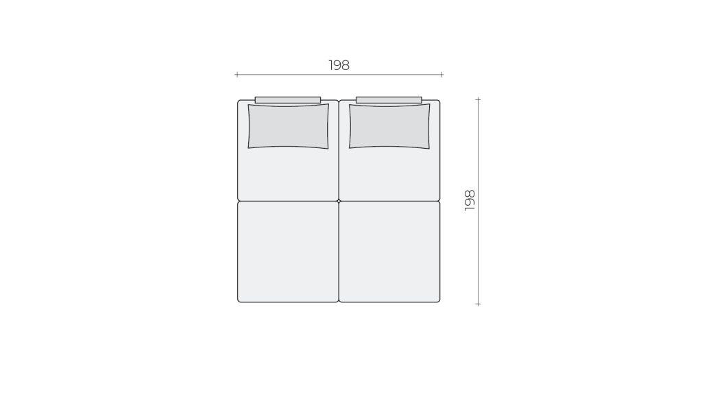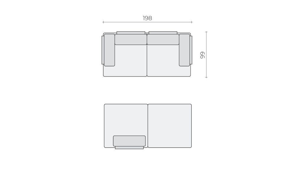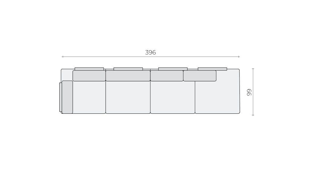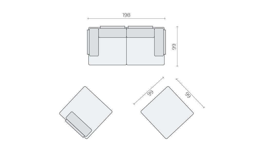 CasCais backrests can be moved along the sides of the elements. There are holes hidden under the seam on the seat elements, into which the cushion support is inserted. On the largest L element, there are holes for placing two backrests on one of the longer sides and one each on the two shorter sides. The square K element has space for one backrest on two sides and the rectangular F on one of the shorter sides. If you wish, you can also remove the backrests and store them in the storage space at the bottom of the set.